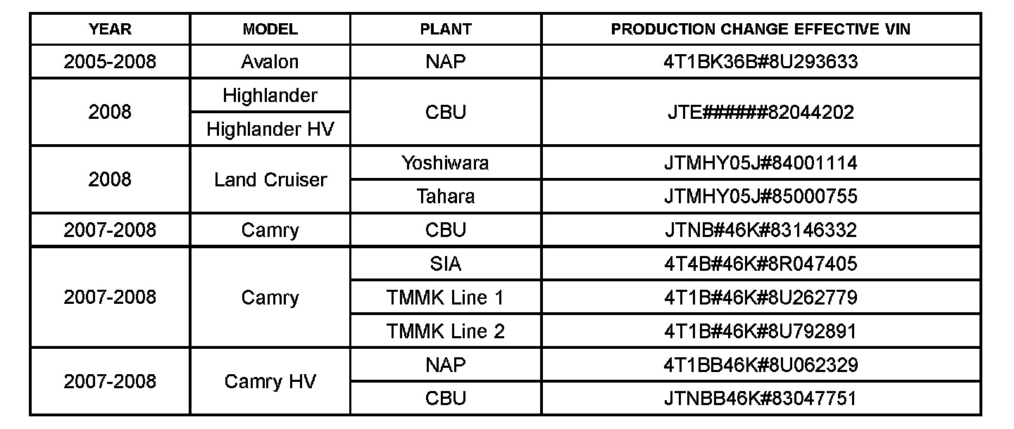 This TSB applies to vehicles produced BEFORE the Production Change Effective VINs shown.