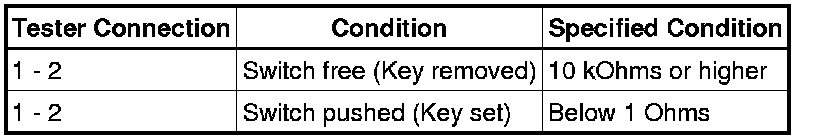 If the result is not as specified, replace the unlock warning switch assembly.