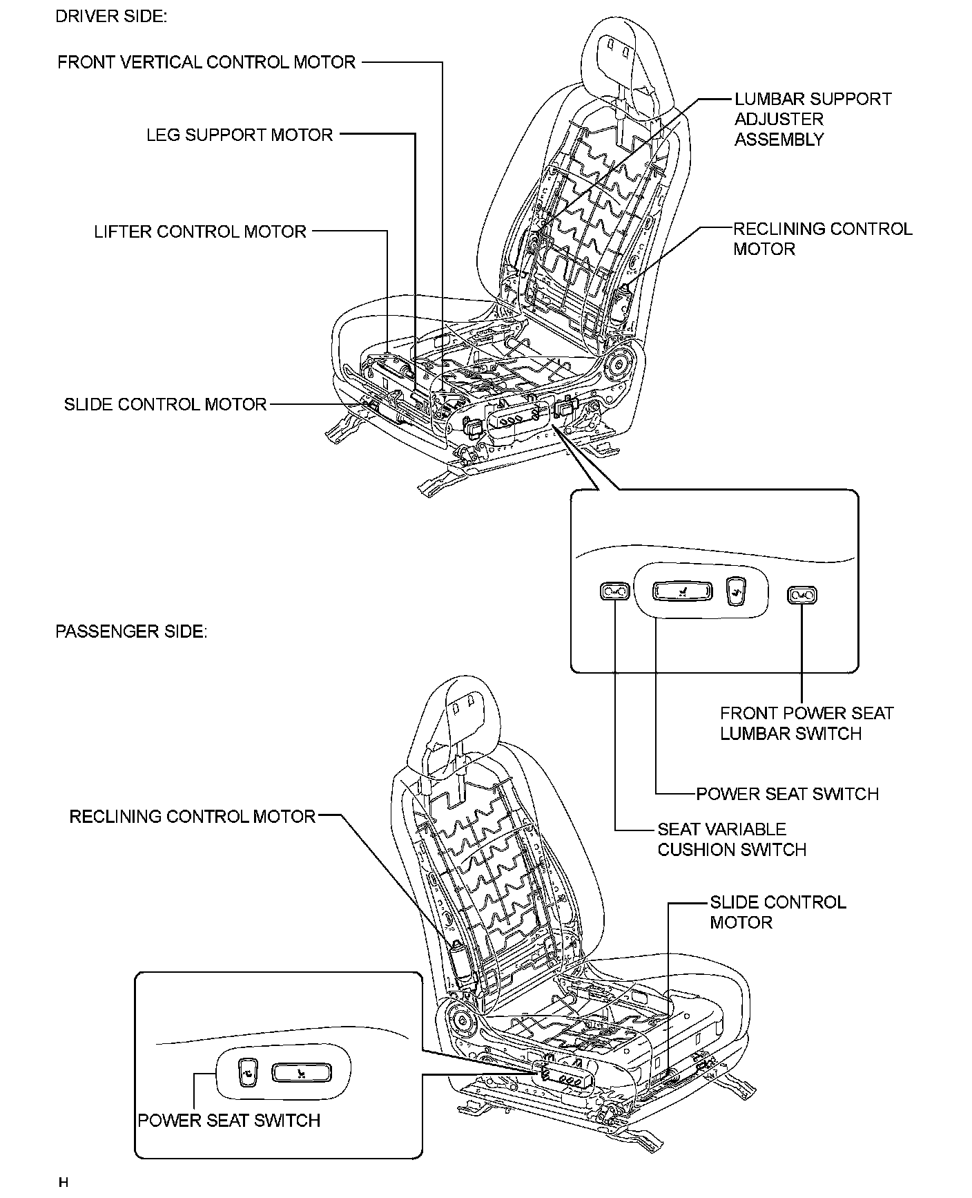 SEAT: FRONT POWER SEAT CONTROL SYSTEM: PARTS LOCATION