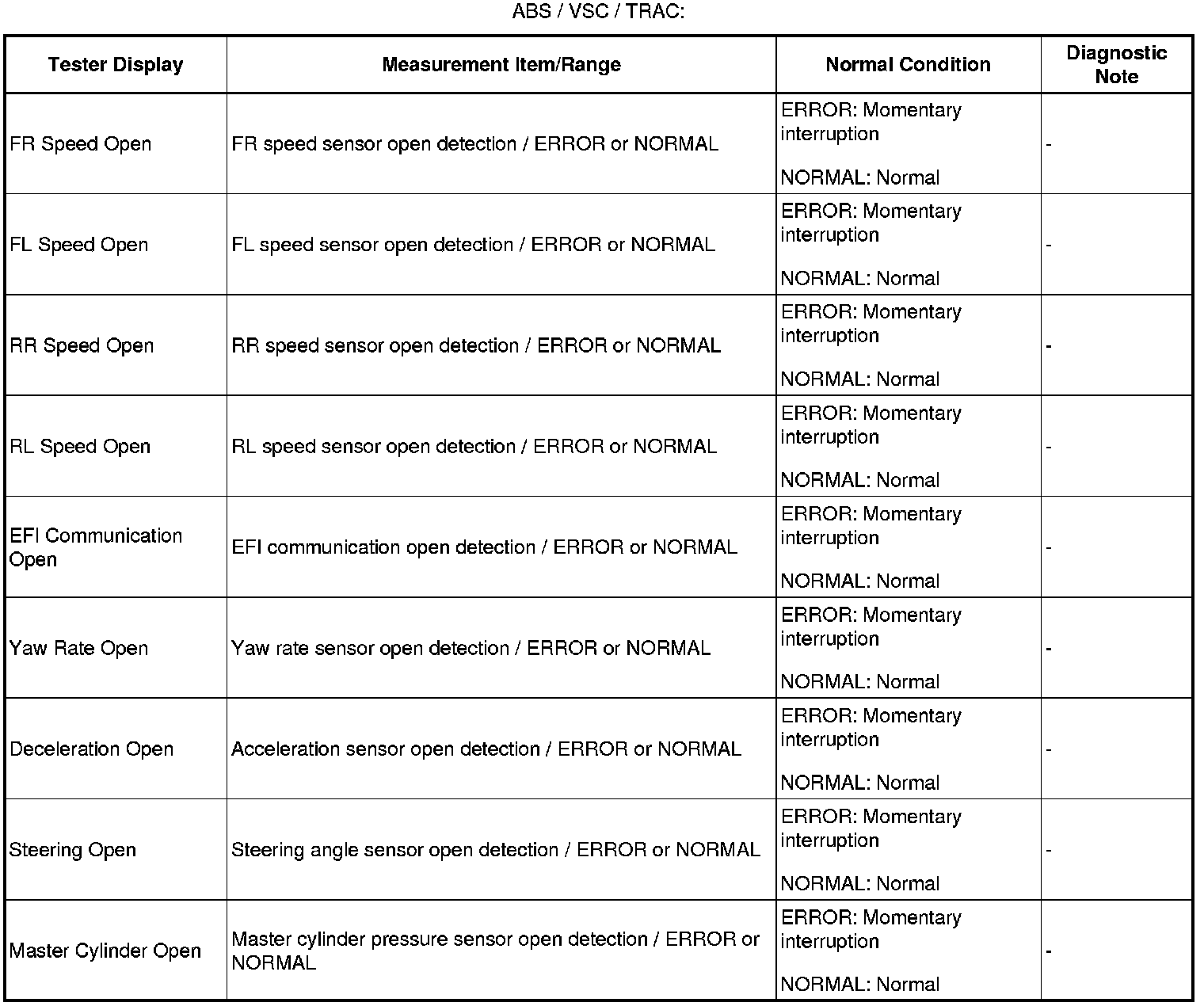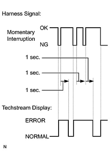 - The ERROR display on Techstream will remain displayed for 1 second after the harness signal changes from momentary interruption (open circuit) to normal condition.
