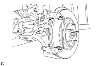 (a) Remove the 2 bolts and front disc brake cylinder mounting from the steering knuckle.