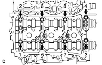 (b) Uniformly loosen and remove the 8 bearing cap bolts in several steps and in the sequence shown in the illustration.