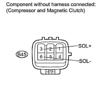If the resistance is not as specified, replace the compressor and magnetic clutch.