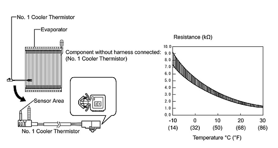 If the resistance is not as specified, replace the evaporator temperature sensor.