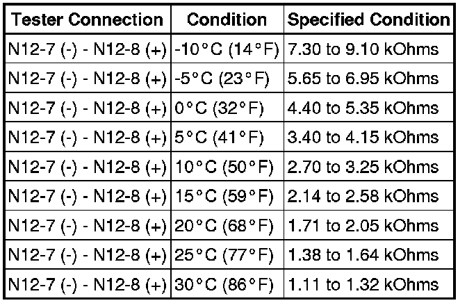If the resistance value is not as specified, replace the sensor.