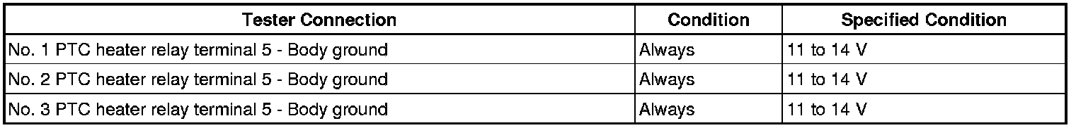 3. CHECK HARNESS AND CONNECTOR (PTC HEATER RELAY - BODY GROUND)