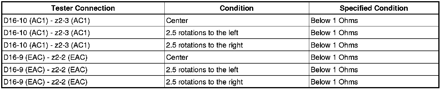 If there is a short in the circuit, the resulting condition is the same as if the switch were continuously depressed. Therefore, the air conditioning control assembly cannot be operated by the steering pad switch assembly, and the air conditioning control assembly will not be able to function correctly.