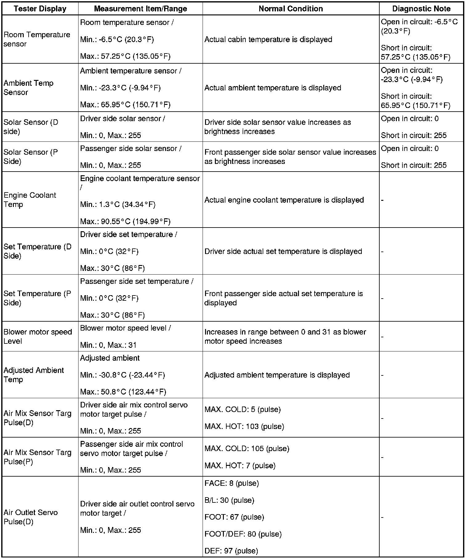 AIR CONDITIONING: AIR CONDITIONING SYSTEM (for Automatic Air Conditioning System): DATA LIST / ACTIVE TEST