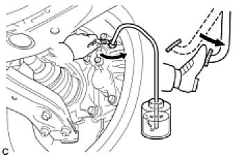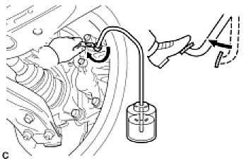 (c) When fluid stops coming out, tighten the bleeder plug, and then release the brake pedal (*4).