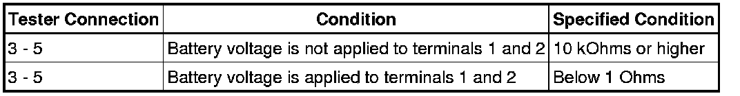 If the resistance is not as specified, replace the ACC relay.