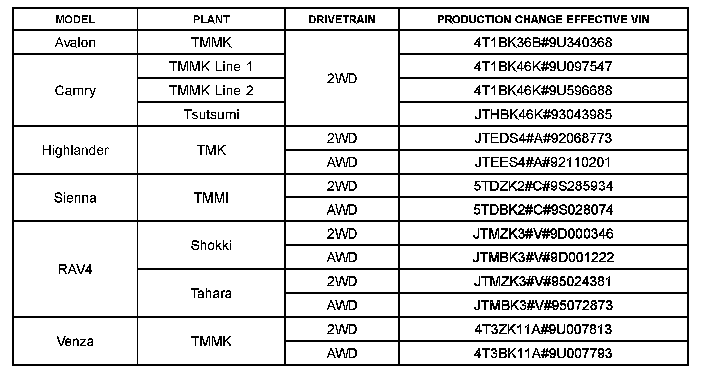 This TSB applies to vehicles produced BEFORE the Production Change Effective VINs shown.
