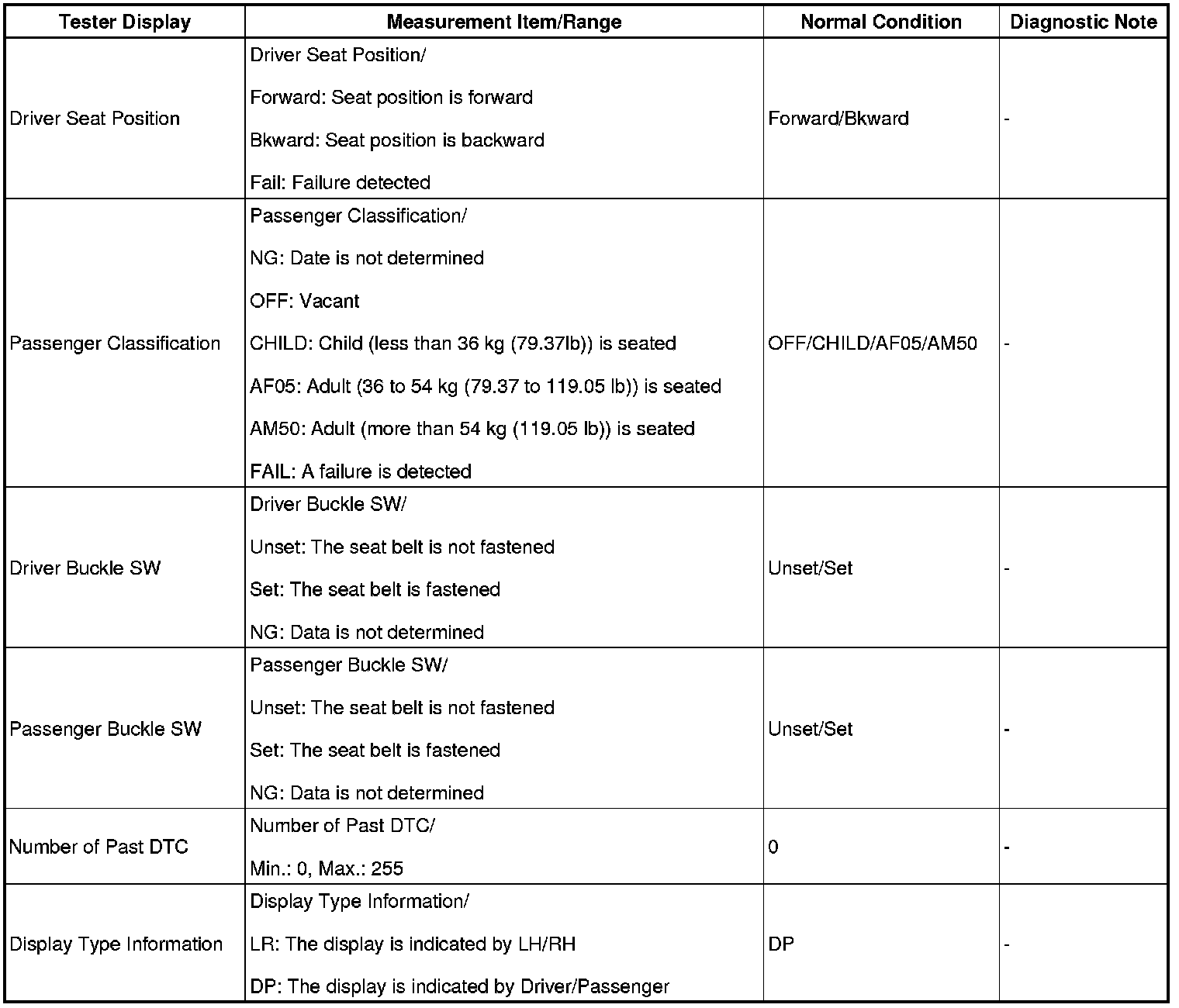 1. DATA LIST FOR CENTER AIRBAG SENSOR ASSEMBLY