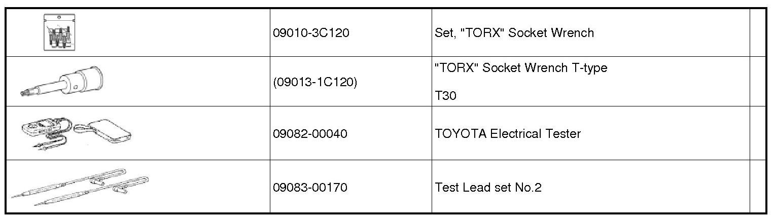 PREPARATION: SUPPLEMENTAL RESTRAINT SYSTEM: RECOMMENDED TOOLS