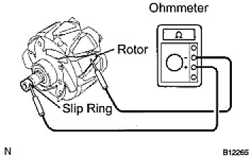 (1) Using an ohmmeter, measure the resistance between the slip ring and rotor.