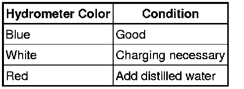 (1) If the electrolyte level is low, replace the battery (or add distilled water) and check the charging system.