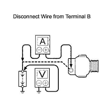 (1) Disconnect the wire from terminal B of the generator, then connect it to the negative (-) lead of an ammeter.