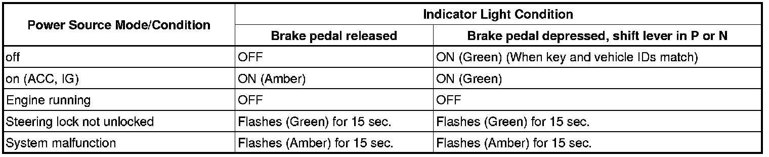(1) Check that the engine switch indicator turns on and changes color according to the table below.