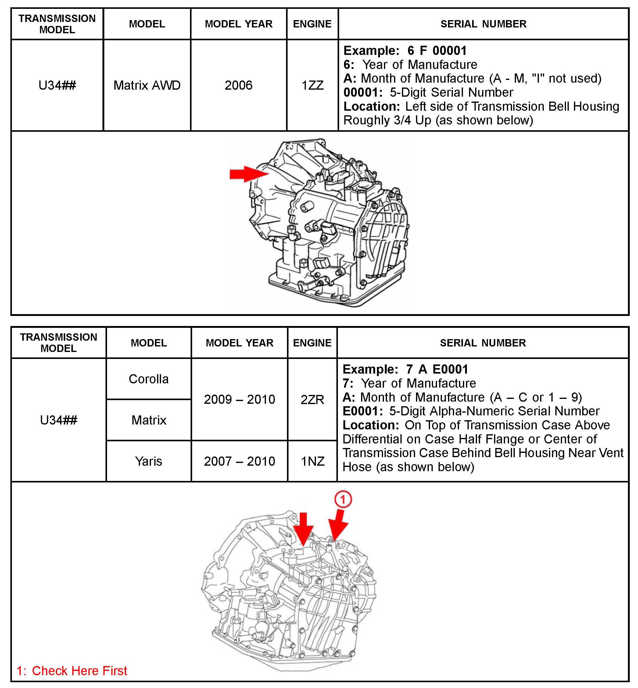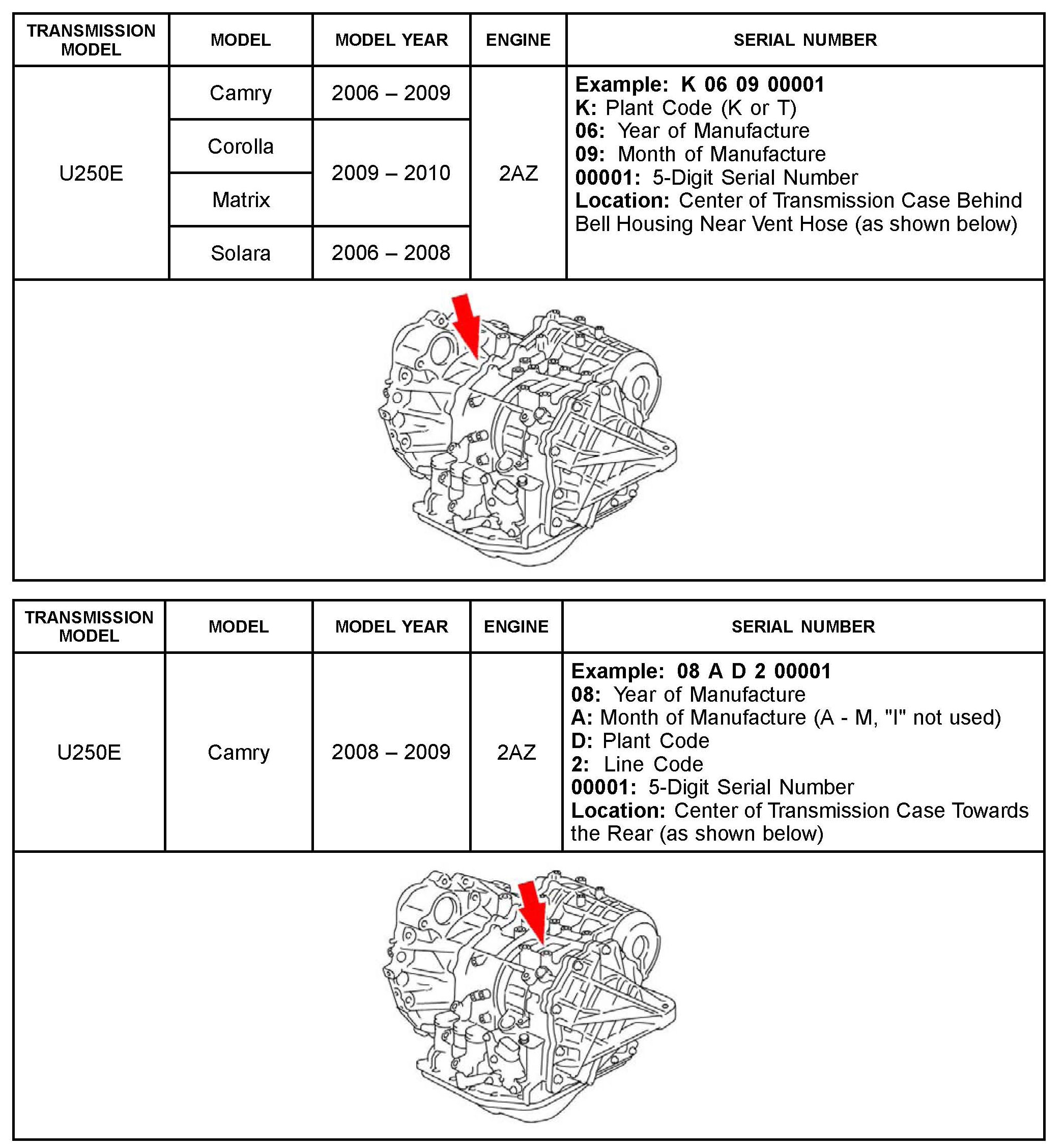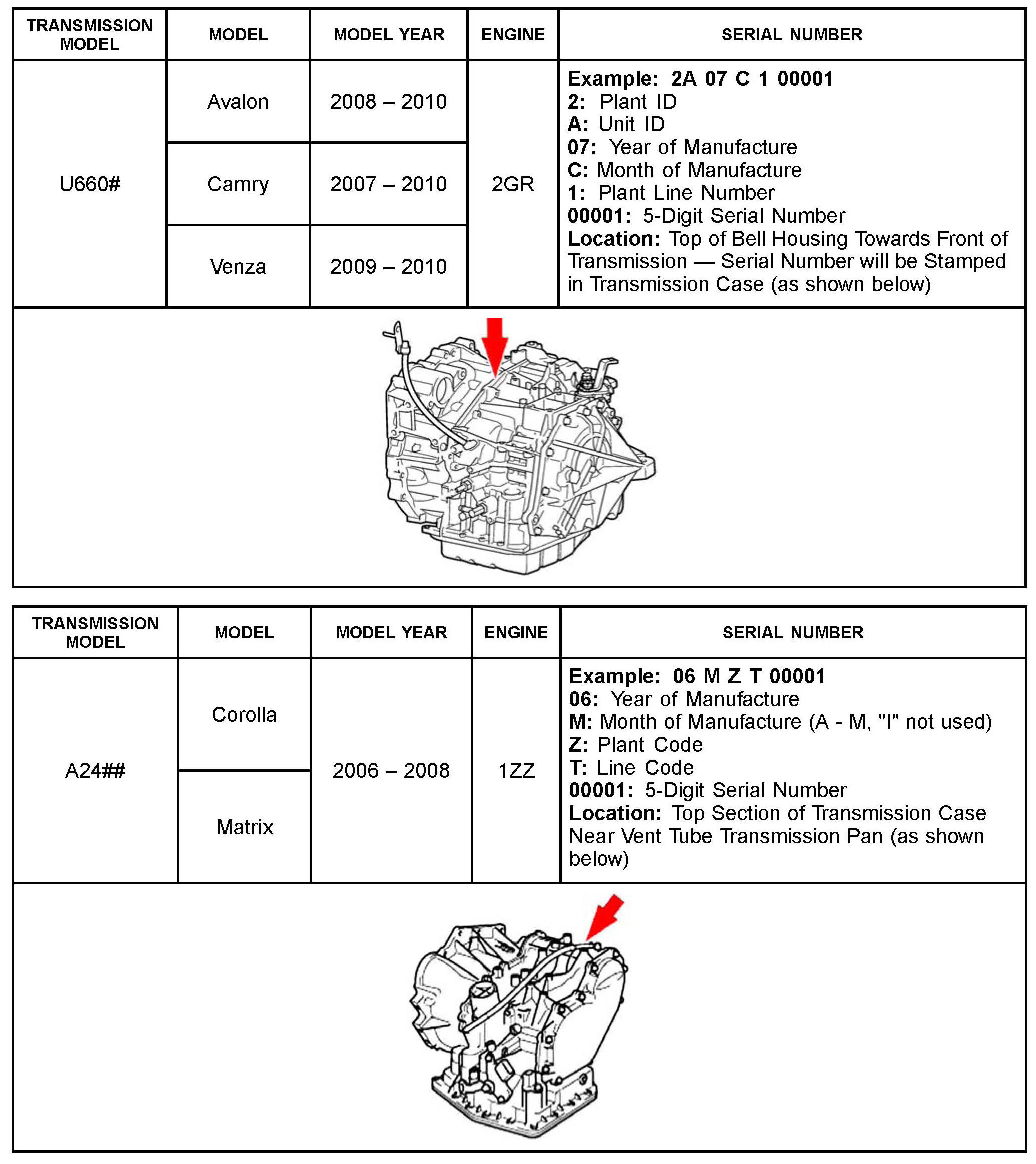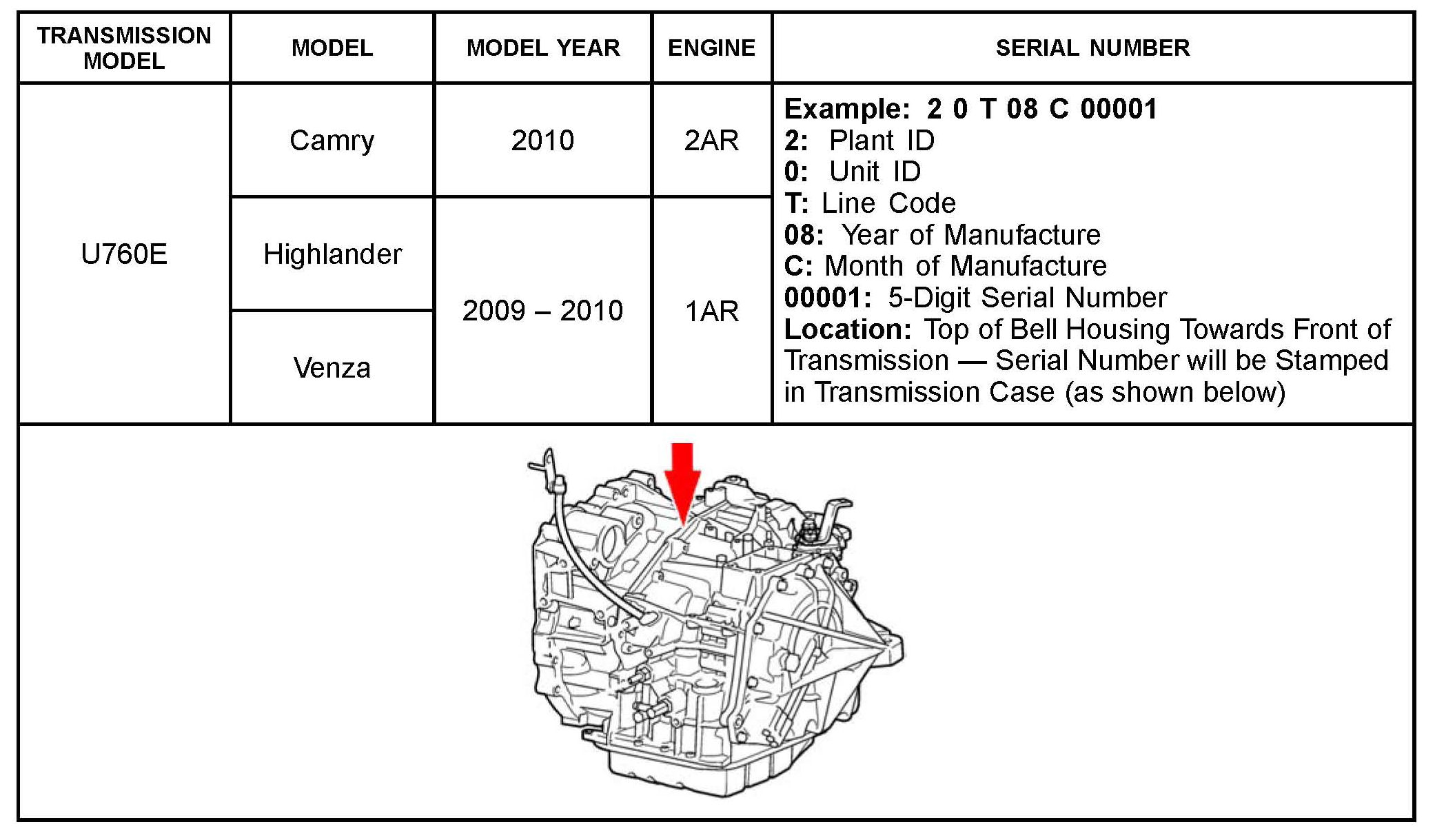 The purpose of this TSB is to assist in the identification and location of serial numbers on 2006 - 2010 model year automatic transmissions.