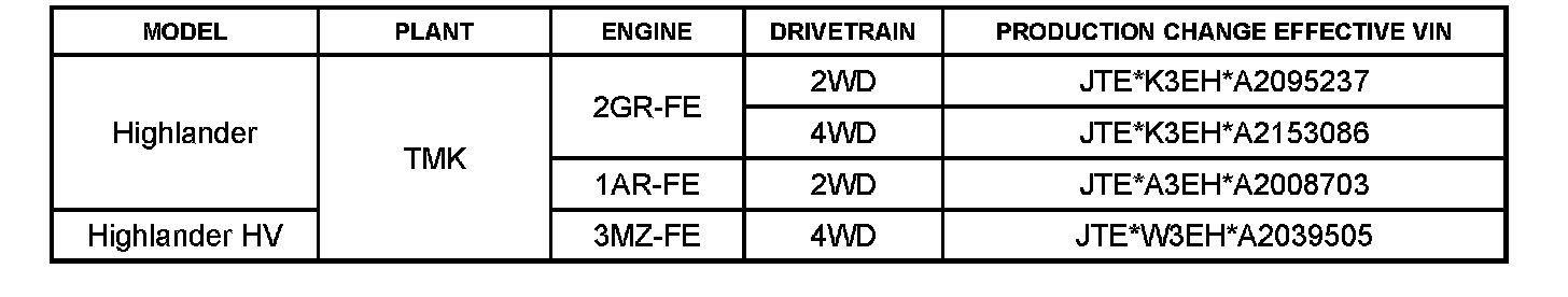 This TSB applies to all 2008 - 2009 vehicles and 2010 vehicles produced BEFORE the Production Change Effective VINs shown.