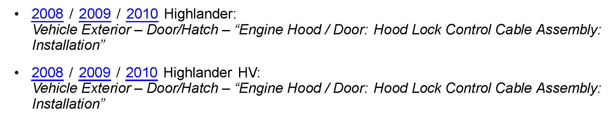 ^ Disconnect the control cable from the latch assembly but do NOT remove the control cable from the vehicle.
