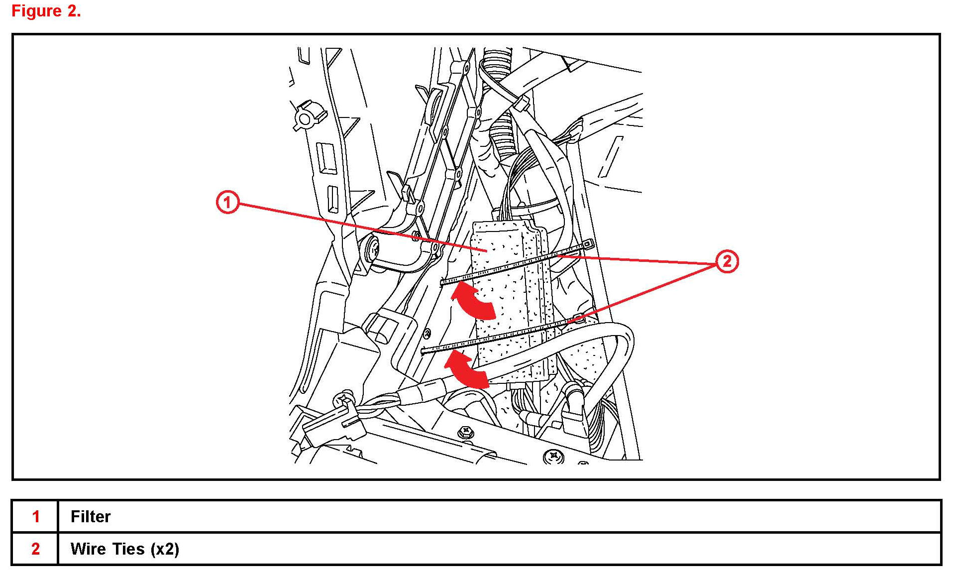 D. Secure the filter to the vehicle wire harness using wire ties (see example illustration shown in Figure 2).