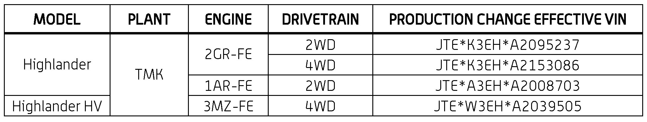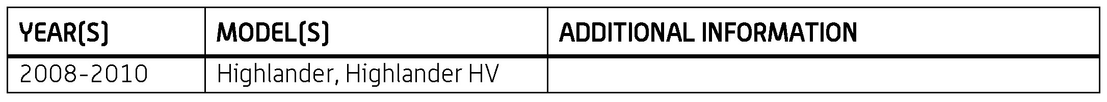 - Model: Highlander / Highlander HV