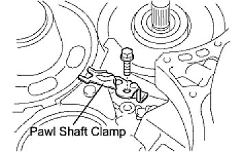 (b) Temporarily install the parking lock pawl, shaft, and spring to the transaxle case as shown in the illustration.