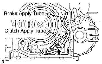 NOTE: Make sure to install the clamp to the apply tube before installing the apply tube to the transaxle case. This prevents the apply tube from being deformed or damaged.