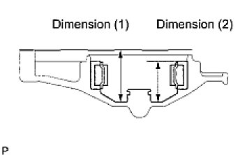 (e) As shown in the illustration, measure the 2 places of the transaxle housing, and calculate dimension F using the formula below.