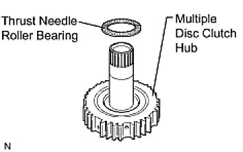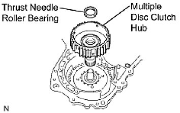 (b) Coat the thrust needle roller bearing and race with yellow petrolatum, and install them onto the multiple disc clutch hub.