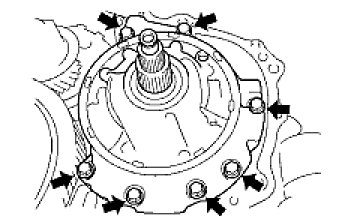 - Fully engage all the discs of the underdrive clutch and hub splines of the underdrive planetary gear assembly and install them securely.