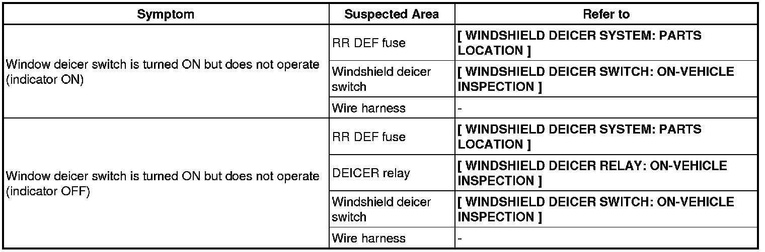 / WINDOWGLASS: WINDSHIELD DEICER SYSTEM: PROBLEM SYMPTOMS TABLE