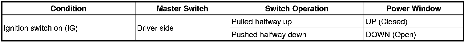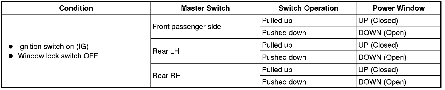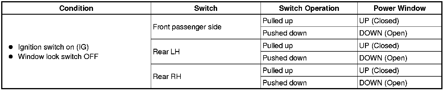 (b) Check that the power windows except the driver side power window operate as follows: