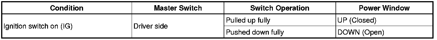 (a) Check that the driver side power window operates as follows: