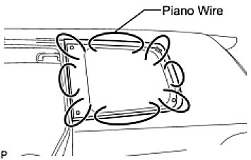 (b) From the interior, insert a piano wire between the vehicle body and glass as shown in the illustration.