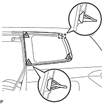 NOTE: When separating the quarter window assembly from the vehicle, be careful not to damage the vehicle's paint or interior/exterior ornaments.