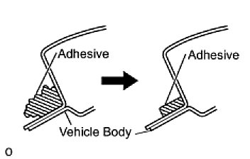 (1) On the contact surfaces of the vehicle body, use a knife to cut away excess adhesive as shown in the illustration.