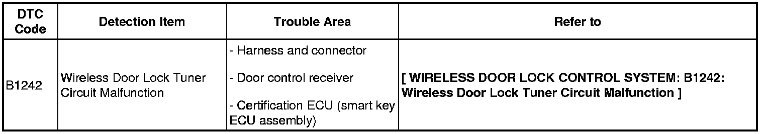 DOOR LOCK: WIRELESS DOOR LOCK CONTROL SYSTEM: DIAGNOSTIC TROUBLE CODE CHART