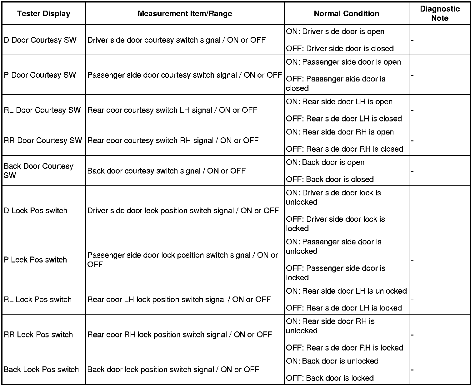 DOOR LOCK: WIRELESS DOOR LOCK CONTROL SYSTEM: DATA LIST / ACTIVE TEST