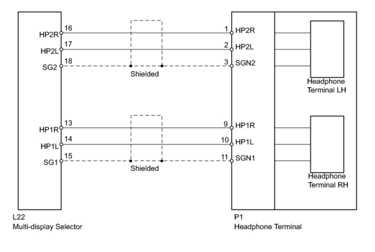 AUDIO / VIDEO: REAR SEAT ENTERTAINMENT SYSTEM: Sound Signal Circuit between Multi-display Controller and Head-phone Terminal
