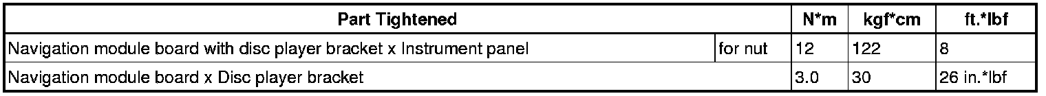SPECIFICATIONS: NAVIGATION / MULTI INFO DISPLAY: TORQUE SPECIFICATIONS