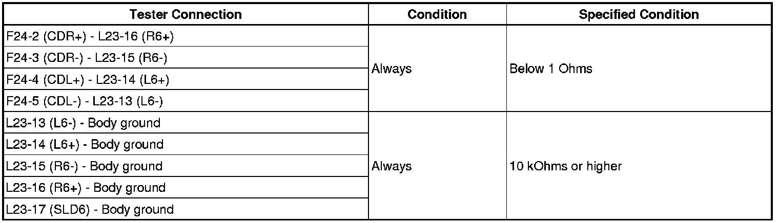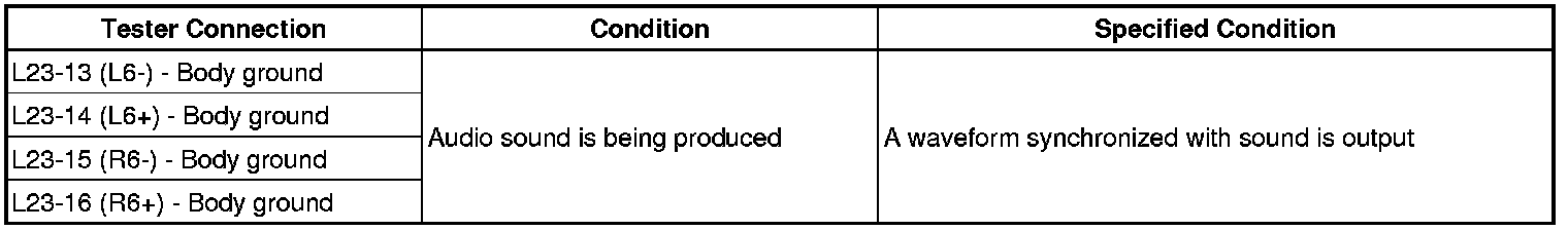 (b) Using an oscilloscope, check the signal waveform between each terminal and body ground according to the conditions, as shown in the chart below.