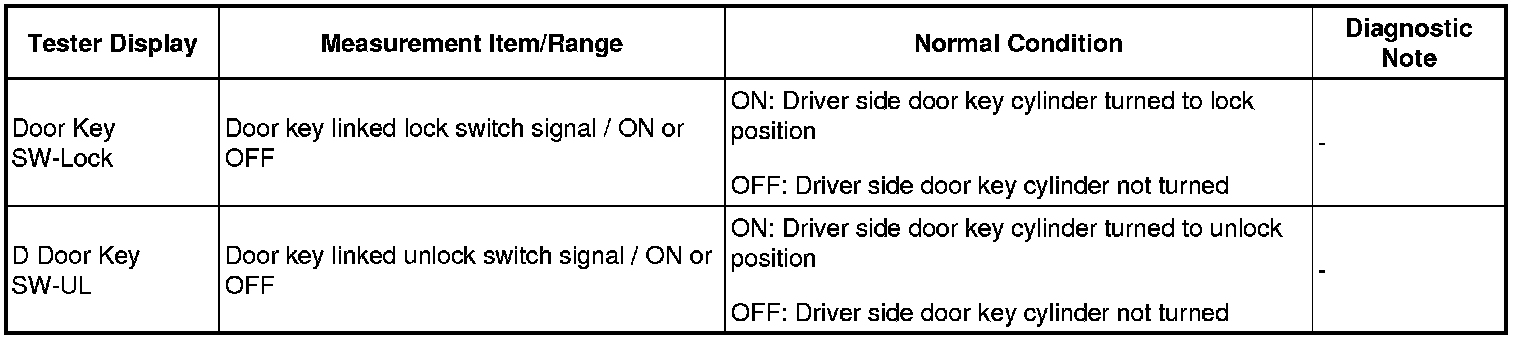 C -- READ VALUE USING TECHSTREAM (DOOR KEY LINKED LOCK AND UNLOCK SWITCH)