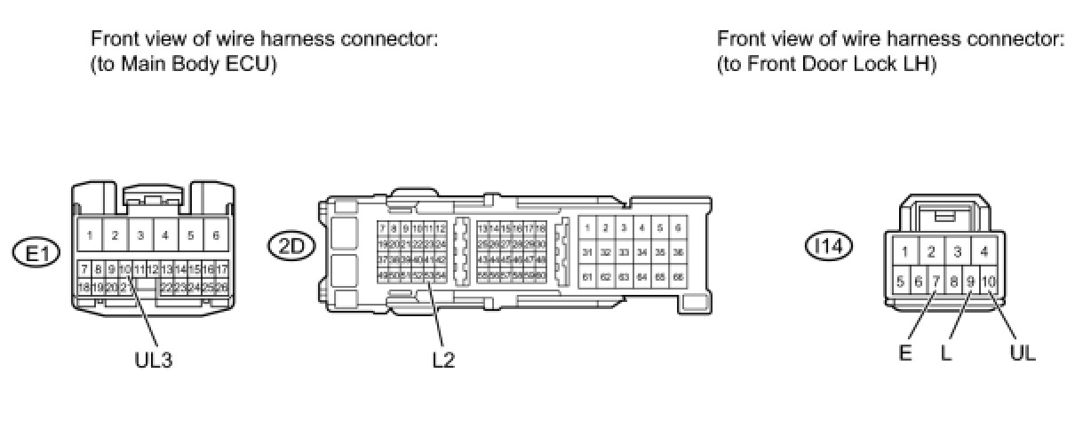(b) Disconnect the I14 door lock connector.