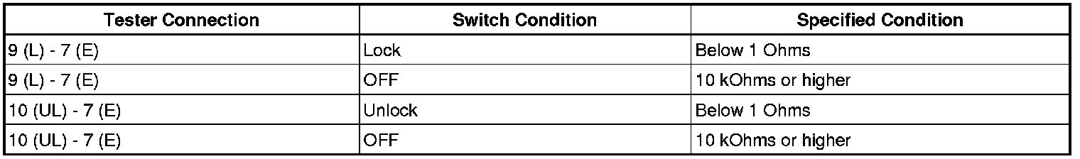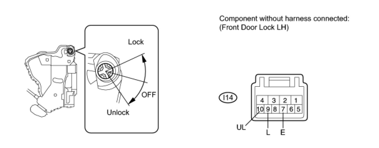 7. INSPECT FRONT DOOR LOCK ASSEMBLY LH (DOOR KEY LINKED LOCK AND UNLOCK SWITCH)