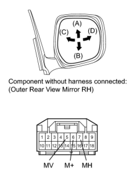 (b) Apply battery voltage and check the operation of the power mirror.