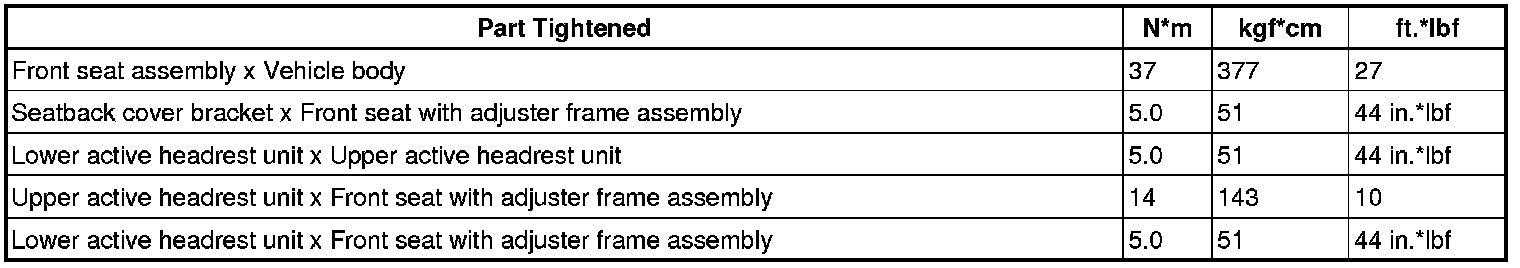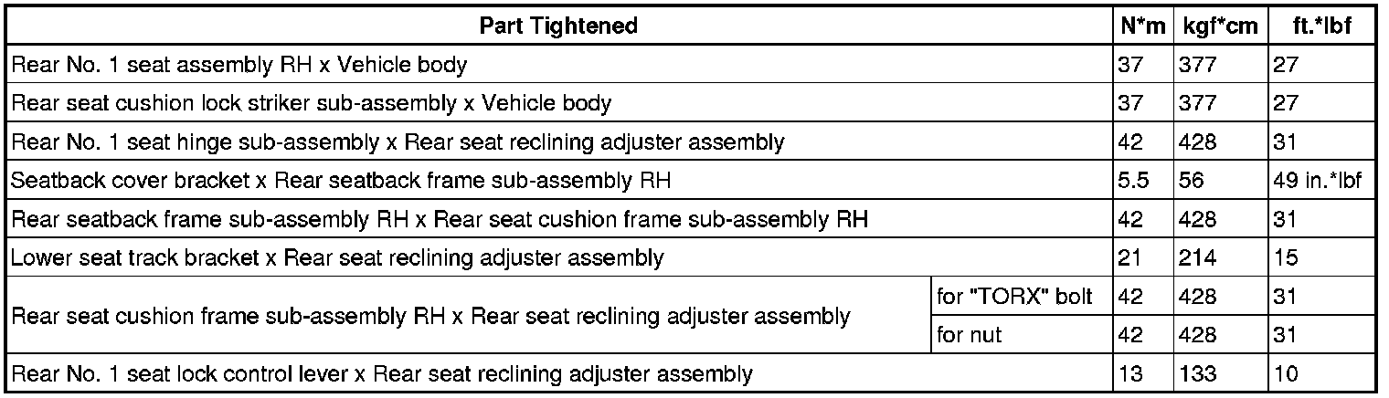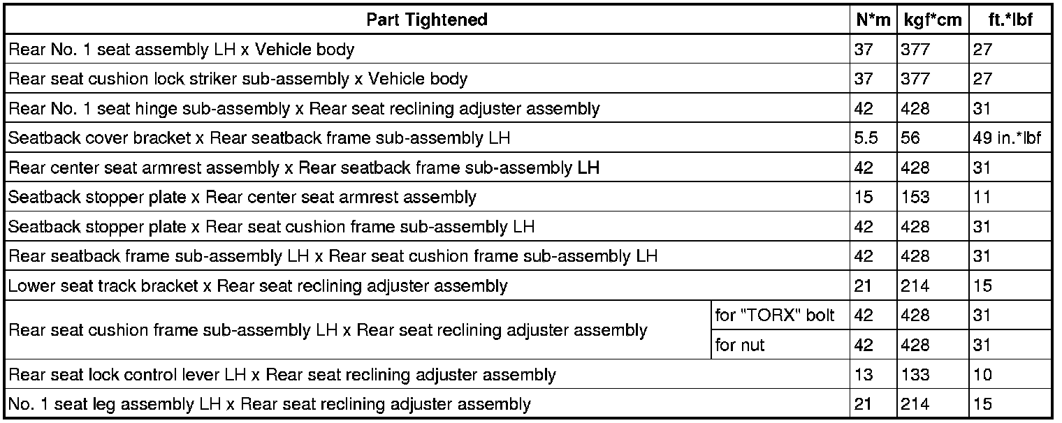 SPECIFICATIONS: SEAT: TORQUE SPECIFICATIONS