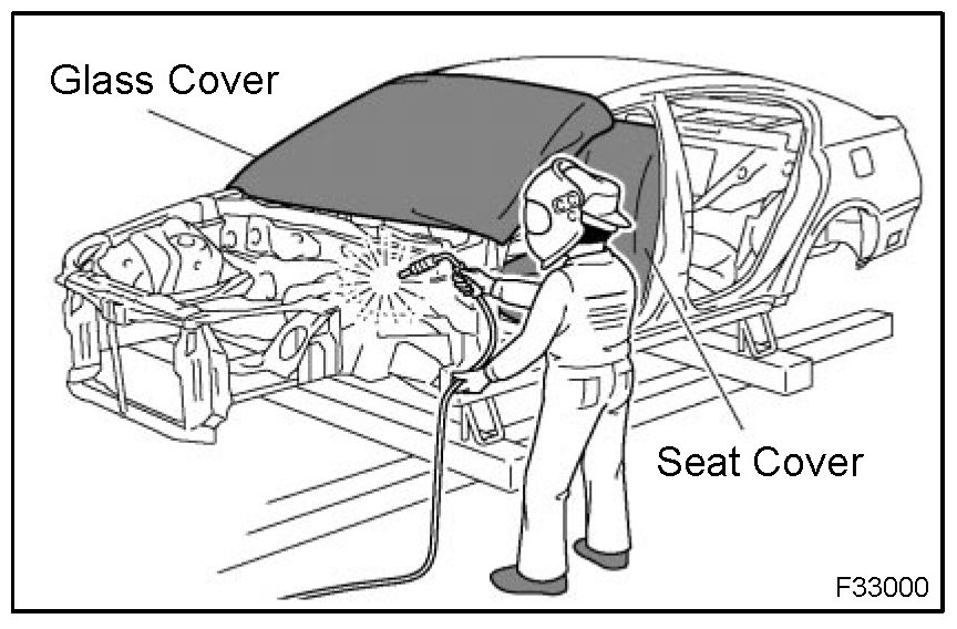 1. When welding, cover glass, seats, carpets, etc. with heat resistant fireproof covers to protect them.