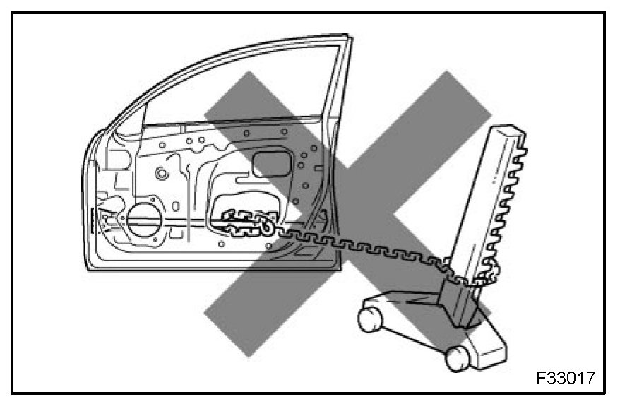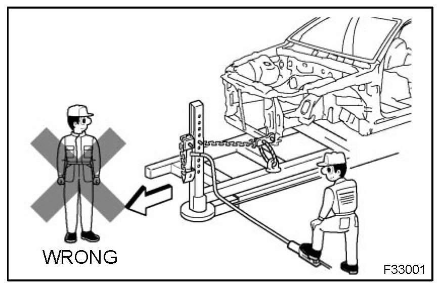 1. Rustproof high strength steel sheets are used for the body frame. Therefore, if these parts are heat repaired using an acetylene torch or equivalent, the crystalline structure changes, causing the strength of the steel sheets to decrease. Also, the zinc coating which is used to protect the body from rust will be damaged. This causes the surface of the steel sheets to become oxidized, which reduces their ability to resist rust.