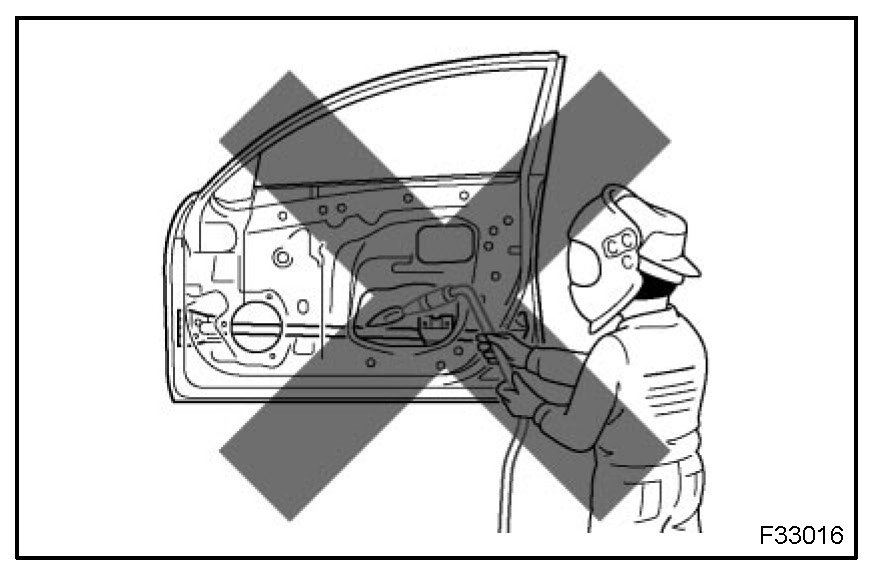 2. When using an electric welder, first remove all airbags and seat belt pretensioners.